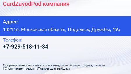 CardZavodPod, компания по адресу 142116, Московская область, Подольск, Дружбы, 19а в дальнейшем Организация, размещена в следующих категориях: