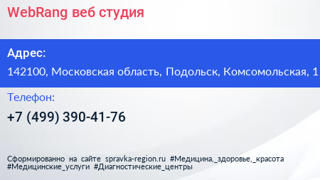 WebRang, веб-студия по адресу 142100, Московская область, Подольск, Комсомольская, 1 в дальнейшем Организация, размещена в следующих категориях: