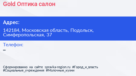 Gold Оптика, салон по адресу 142184, Московская область, Подольск, Симферопольская, 37 в дальнейшем Организация, размещена в следующих категориях: