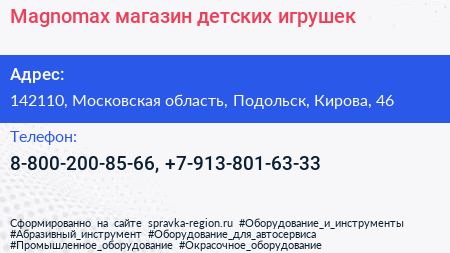 Magnomax, магазин детских игрушек по адресу 142110, Московская область, Подольск, Кирова, 46 в дальнейшем Организация, размещена в следующих категориях: