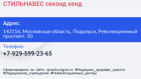 СТИЛЬНАВЕС, секонд-хенд по адресу 142116, Московская область, Подольск, Революционный проспект, 50 в дальнейшем Организация, размещена в следующих категориях: