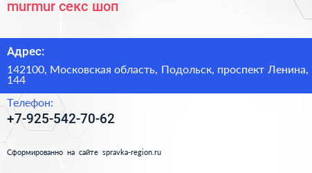 murmur, секс-шоп по адресу 142100, Московская область, Подольск, проспект Ленина, 144 в дальнейшем Организация, размещена в следующих категориях: