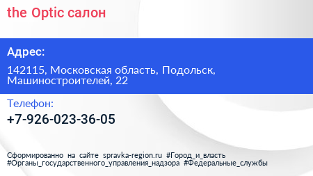 the Optic, салон по адресу 142115, Московская область, Подольск, Машиностроителей, 22 в дальнейшем Организация, размещена в следующих категориях: