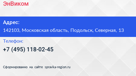 ЭнВиком по адресу 142103, Московская область, Подольск, Северная, 13 в дальнейшем Организация, размещена в следующих категориях: