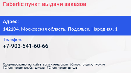 Faberlic, пункт выдачи заказов по адресу 142104, Московская область, Подольск, Народная, 1 в дальнейшем Организация, размещена в следующих категориях: