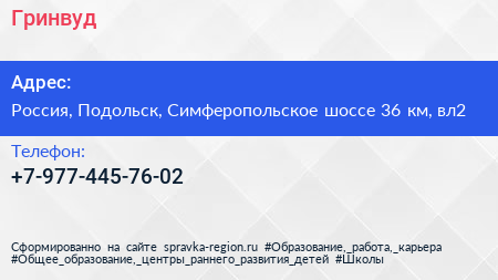 Гринвуд по адресу Строительный рынок "Покров", Симферопольское шоссе (дублёр), Сельхозтехника, городской округ Подольск, Московская область, Центральный федеральный округ, 142116, Россия в дальнейшем Организация, размещена в следующих категориях:
