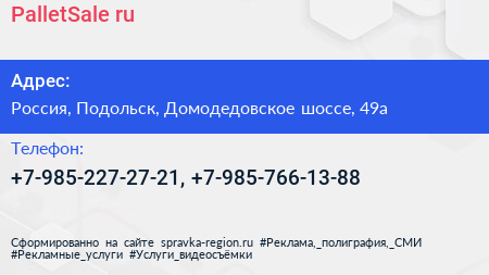 PalletSale.ru по адресу Строительный рынок "Покров", Симферопольское шоссе (дублёр), Сельхозтехника, городской округ Подольск, Московская область, Центральный федеральный округ, 142116, Россия в дальнейшем Организация, размещена в следующих категориях: