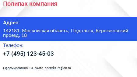 Полипак, компания по адресу 142181, Московская область, Подольск, Бережковский проезд, 18 в дальнейшем Организация, размещена в следующих категориях: