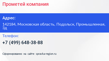 Прометей, компания по адресу 142184, Московская область, Подольск, Промышленная, 3д в дальнейшем Организация, размещена в следующих категориях: