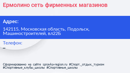 Ермолино, сеть фирменных магазинов по адресу 142115, Московская область, Подольск, Машиностроителей, вл22Б в дальнейшем Организация, размещена в следующих категориях: