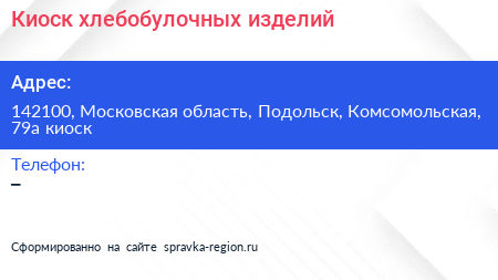 Киоск хлебобулочных изделий по адресу 142100, Московская область, Подольск, Комсомольская, 79а киоск в дальнейшем Организация, размещена в следующих категориях: