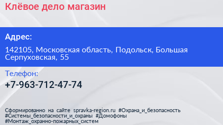Клёвое дело, магазин по адресу 142105, Московская область, Подольск, Большая Серпуховская, 55 в дальнейшем Организация, размещена в следующих категориях: