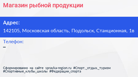 Магазин рыбной продукции по адресу 142105, Московская область, Подольск, Станционная, 1в в дальнейшем Организация, размещена в следующих категориях: