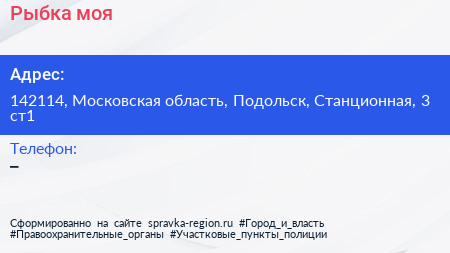 Рыбка моя по адресу 142114, Московская область, Подольск, Станционная, 3 ст1 в дальнейшем Организация, размещена в следующих категориях: