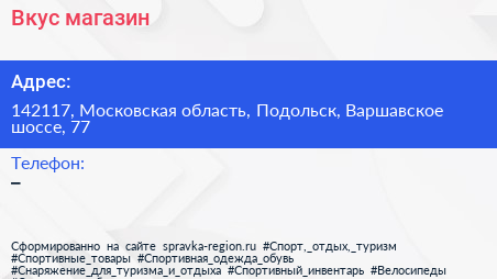 Вкус, магазин по адресу 142117, Московская область, Подольск, Варшавское шоссе, 77 в дальнейшем Организация, размещена в следующих категориях:
