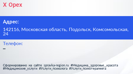 X-Opex по адресу 142116, Московская область, Подольск, Комсомольская, 24 в дальнейшем Организация, размещена в следующих категориях: