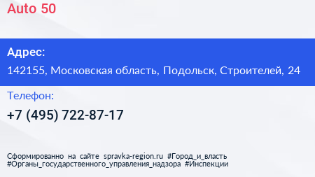 Auto-50 по адресу 142155, Московская область, Подольск, Строителей, 24 в дальнейшем Организация, размещена в следующих категориях: