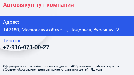 Автовыкуп тут, компания по адресу 142180, Московская область, Подольск, Заречная, 2 в дальнейшем Организация, размещена в следующих категориях: