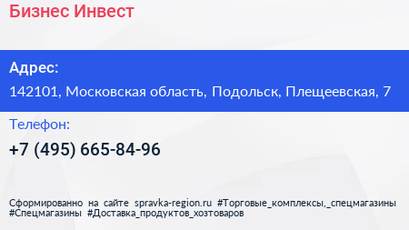 Бизнес Инвест по адресу 142101, Московская область, Подольск, Плещеевская, 7 в дальнейшем Организация, размещена в следующих категориях: