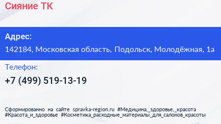 Сияние ТК по адресу 142184, Московская область, Подольск, Молодёжная, 1а в дальнейшем Организация, размещена в следующих категориях: