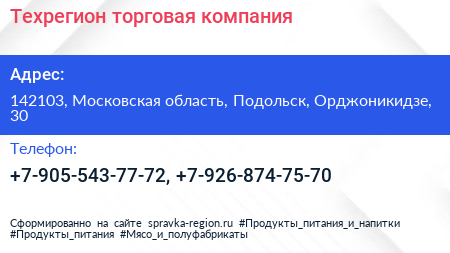 Техрегион, торговая компания по адресу 142103, Московская область, Подольск, Орджоникидзе, 30 в дальнейшем Организация, размещена в следующих категориях: