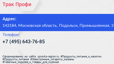 Трак Профи по адресу 142184, Московская область, Подольск, Промышленная, 3 в дальнейшем Организация, размещена в следующих категориях: