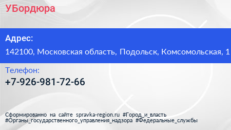 УБордюра по адресу 142100, Московская область, Подольск, Комсомольская, 1 в дальнейшем Организация, размещена в следующих категориях: