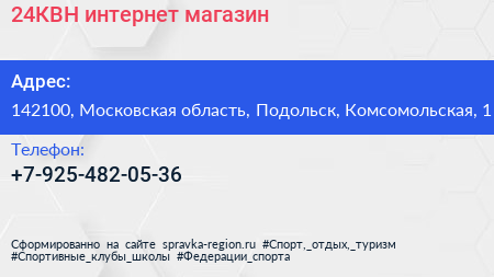 24КВН, интернет-магазин по адресу 142100, Московская область, Подольск, Комсомольская, 1 в дальнейшем Организация, размещена в следующих категориях: