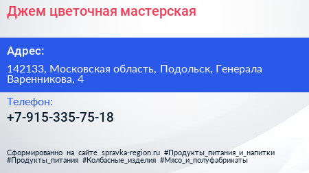 Джем, цветочная мастерская по адресу 142133, Московская область, Подольск, Генерала Варенникова, 4 в дальнейшем Организация, размещена в следующих категориях: