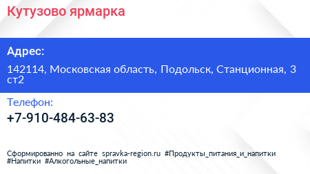 Кутузово, ярмарка по адресу 142114, Московская область, Подольск, Станционная, 3 ст2 в дальнейшем Организация, размещена в следующих категориях: