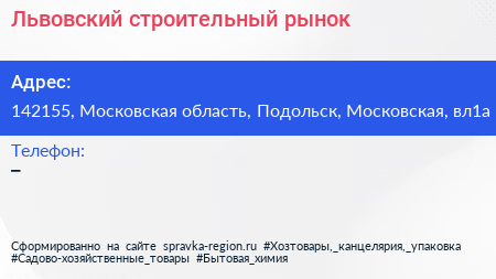 Львовский, строительный рынок по адресу 142155, Московская область, Подольск, Московская, вл1а в дальнейшем Организация, размещена в следующих категориях:
