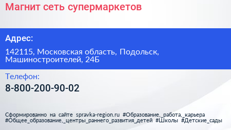 Магнит, сеть супермаркетов по адресу 142115, Московская область, Подольск, Машиностроителей, 24Б в дальнейшем Организация, размещена в следующих категориях:
