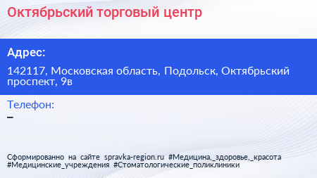 Октябрьский, торговый центр по адресу 142117, Московская область, Подольск, Октябрьский проспект, 9в в дальнейшем Организация, размещена в следующих категориях: