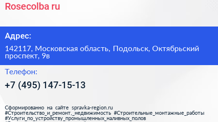 Rosecolba.ru по адресу 142117, Московская область, Подольск, Октябрьский проспект, 9в в дальнейшем Организация, размещена в следующих категориях: