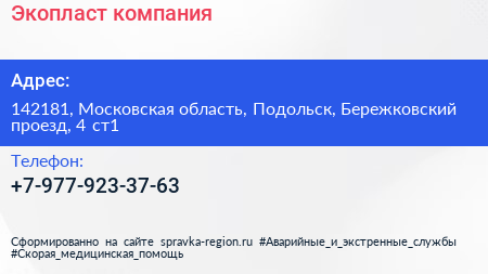 Экопласт, компания по адресу 142181, Московская область, Подольск, Бережковский проезд, 4 ст1 в дальнейшем Организация, размещена в следующих категориях: