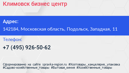 Климовск, бизнес-центр по адресу 142184, Московская область, Подольск, Западная, 11 в дальнейшем Организация, размещена в следующих категориях: