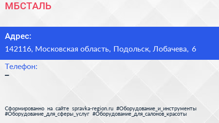 МБСТАЛЬ по адресу 142116, Московская область, Подольск, Лобачева, 6 в дальнейшем Организация, размещена в следующих категориях: