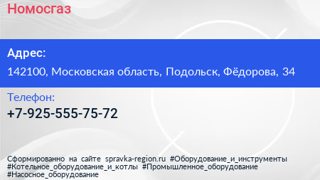 Номосгаз по адресу 142100, Московская область, Подольск, Фёдорова, 34 в дальнейшем Организация, размещена в следующих категориях: