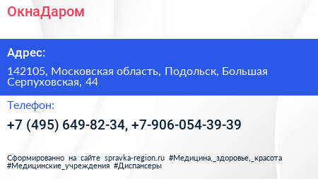 ОкнаДаром по адресу 142105, Московская область, Подольск, Большая Серпуховская, 44 в дальнейшем Организация, размещена в следующих категориях: