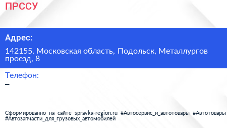 ПРССУ по адресу 142155, Московская область, Подольск, Металлургов проезд, 8 в дальнейшем Организация, размещена в следующих категориях: