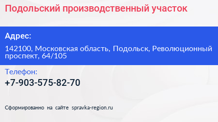 Подольский производственный участок по адресу 142100, Московская область, Подольск, Революционный проспект, 64/105 в дальнейшем Организация, размещена в следующих категориях: