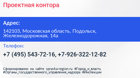 Проектная контора по адресу 142103, Московская область, Подольск, Железнодорожная, 14а в дальнейшем Организация, размещена в следующих категориях: