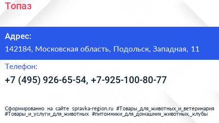 Топаз по адресу 142184, Московская область, Подольск, Западная, 11 в дальнейшем Организация, размещена в следующих категориях: