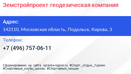 Земстройпроект, геодезическая компания по адресу 142110, Московская область, Подольск, Кирова, 3 в дальнейшем Организация, размещена в следующих категориях: