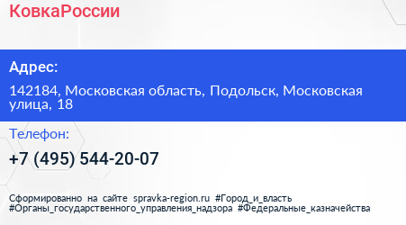 КовкаРоссии по адресу 142184, Московская область, Подольск, Московская улица, 18 в дальнейшем Организация, размещена в следующих категориях: