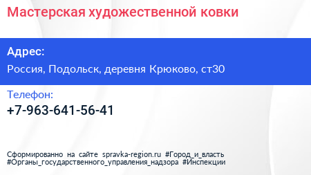 Мастерская художественной ковки по адресу Парковка КСК "Аврора" частная, Подъездная улица, Чулпаново, Жуково, городской округ Домодедово, Московская область, Центральный федеральный округ, 142181, Россия в дальнейшем Организация, размещена в следующих категориях: