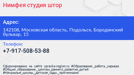 Нимфея, студия штор по адресу 142108, Московская область, Подольск, Бородинский бульвар, 15 в дальнейшем Организация, размещена в следующих категориях: