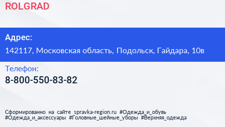 ROLGRAD по адресу 142117, Московская область, Подольск, Гайдара, 10в в дальнейшем Организация, размещена в следующих категориях: