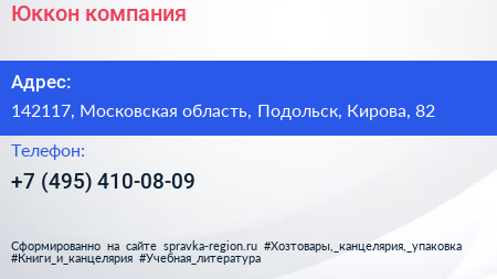 Юккон, компания по адресу 142117, Московская область, Подольск, Кирова, 82 в дальнейшем Организация, размещена в следующих категориях: