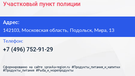 Участковый пункт полиции по адресу 142103, Московская область, Подольск, Мира, 13 в дальнейшем Организация, размещена в следующих категориях: